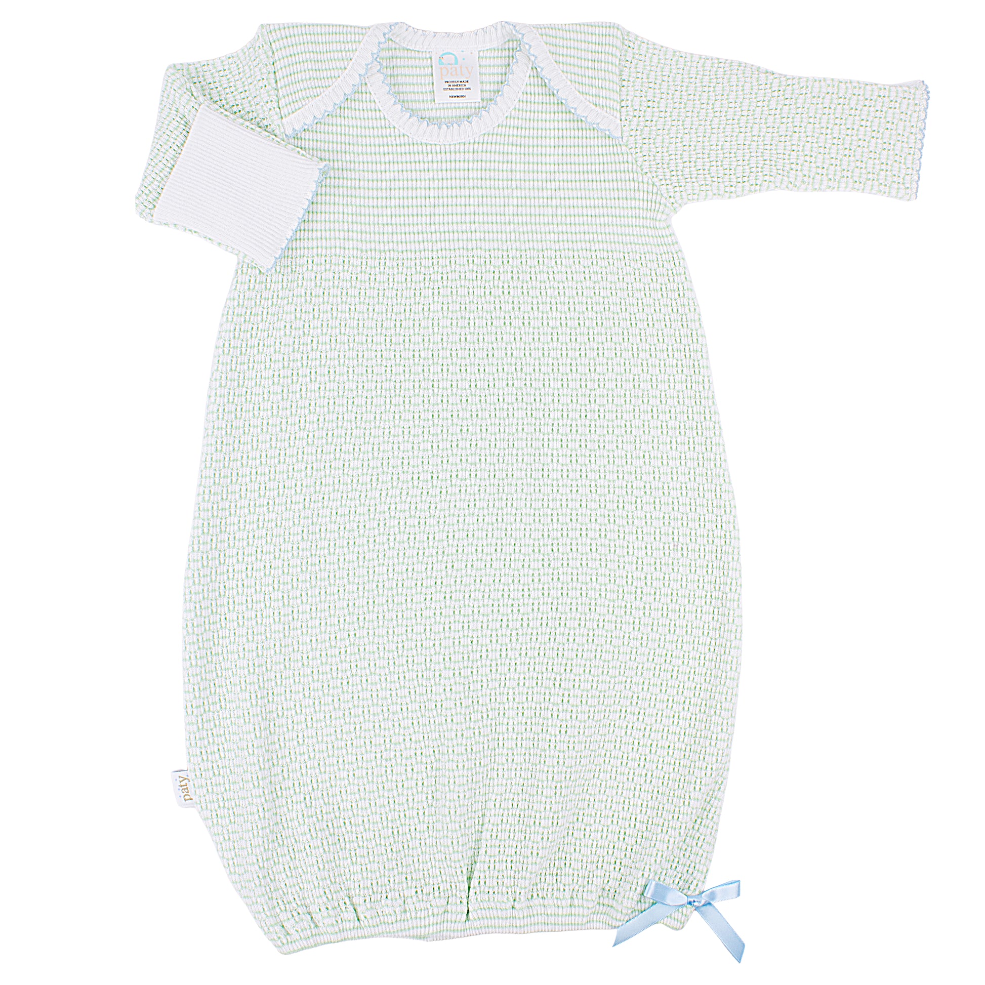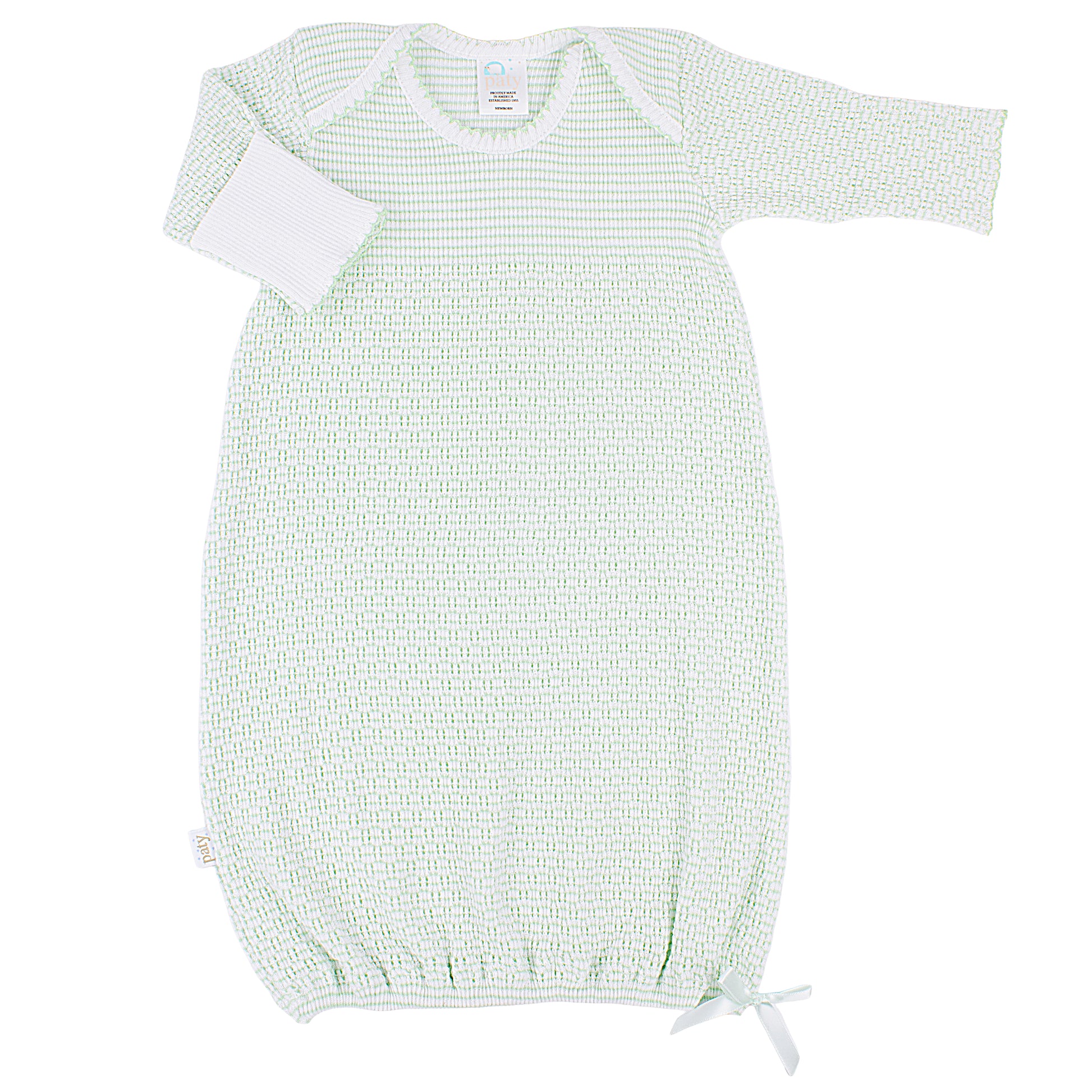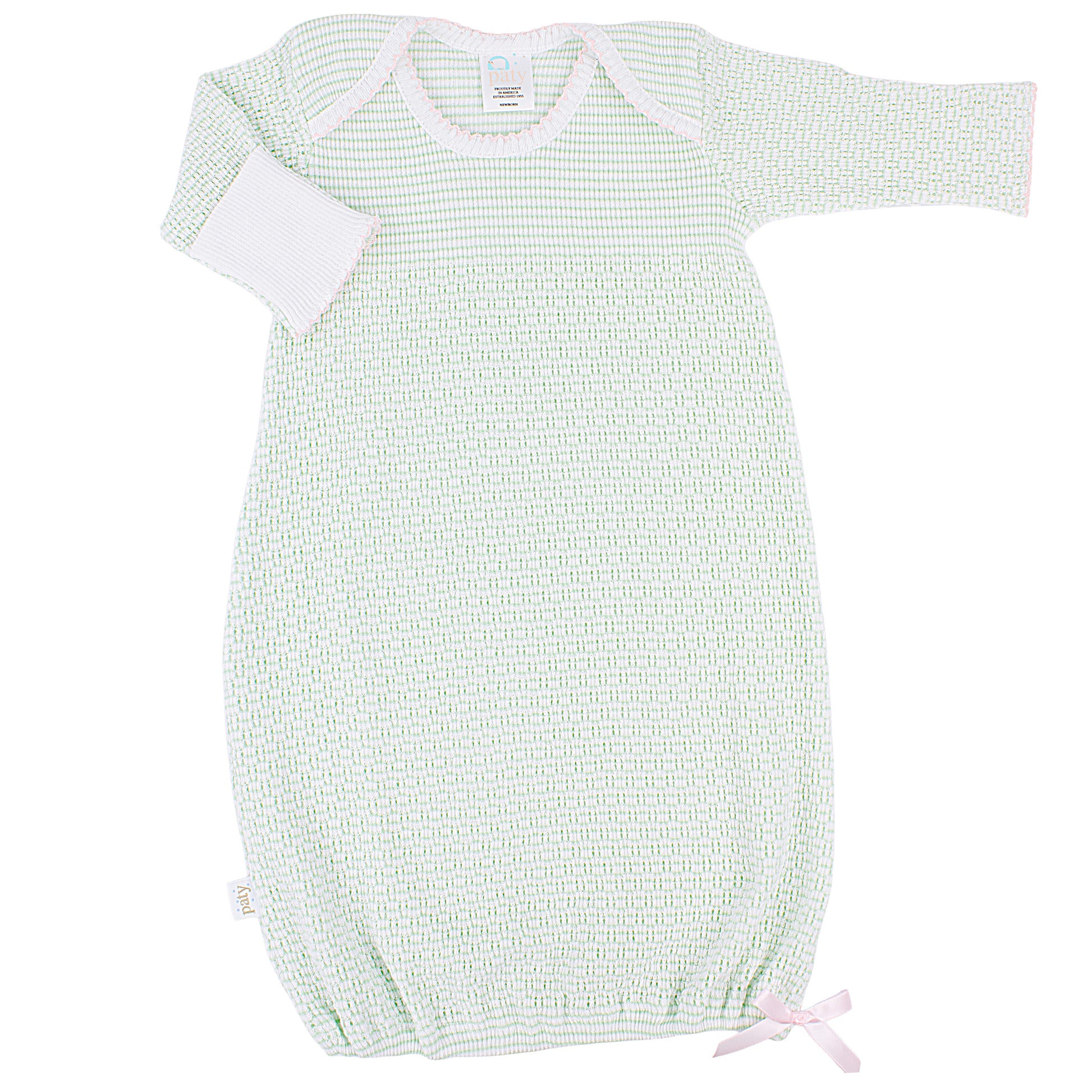 Discover our long sleeve, solid color, overlap shoulder gown at Paty. This is our Premium newborn gown designed for easy diaper access. Soft, comfortable fabric, perfect for baby's first weeks or for a special baby shower gift. Shop today! This particular knit style runs generously. Available in preemie, newborn, 3M, 6M sizes.