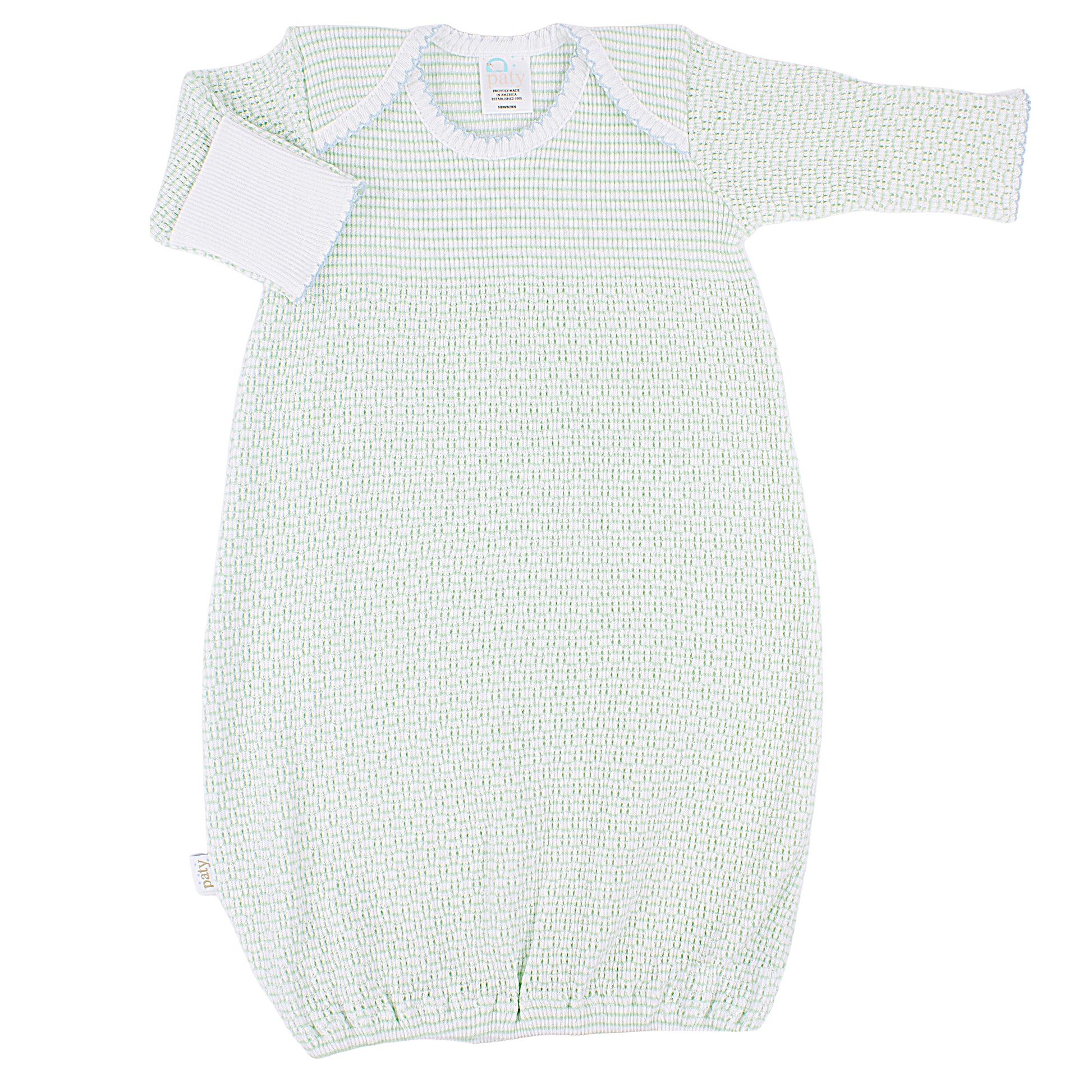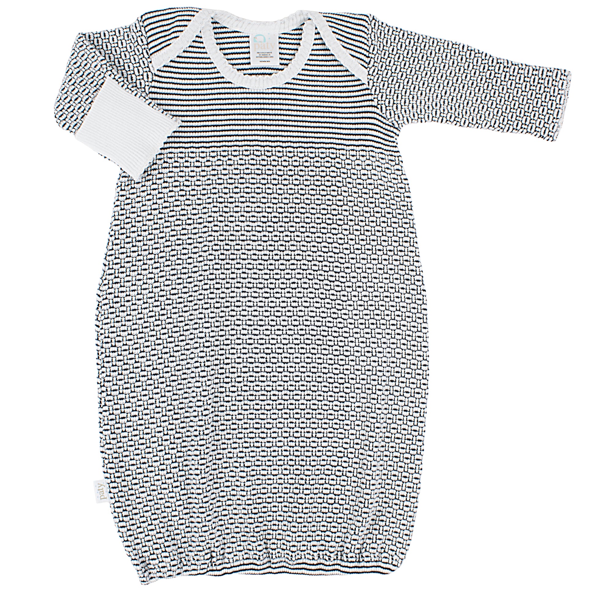 Discover our long sleeve, solid color, overlap shoulder gown at Paty. This is our Premium newborn gown designed for easy diaper access. Soft, comfortable fabric, perfect for baby's first weeks or for a special baby shower gift. Shop today! This particular knit style runs generously. Available in preemie, newborn, 3M, 6M sizes.