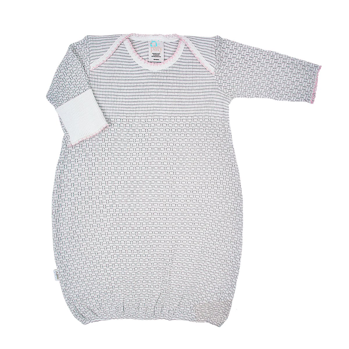 Built-in fold-over cuffs at the hands keep little ones cozy and help protect delicate skin from scratches